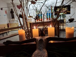 Hem sortit de la celebració en silenci. Un silenci ple, dens, que no era buit sinó sembrat. Amb la sensació d’haver descarregat alguna espina que no ens deixava viure del tot amb amor. Amb una branca a les mans i, potser, amb un brot nou dins nostre.