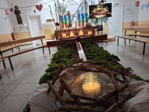 Al llarg de la celebració, les espines han pres rostre: situacions reals, ferides, pors, cansaments, fragments del nostre món i del nostre cor. I, amb un gest humil però ple de significat, les hem dipositat als peus de la Creu. No per oblidar-les, sinó per confiar-les. Per deixar que allò que pesa no tingui l’última paraula.